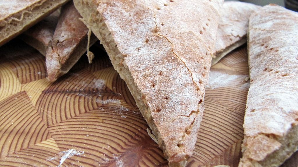 Sulata voi kattilassa ja kaada sekaan vesi. Lämmitä kädenlämpöiseksi. Murenna hiiva kulhoon. Kaada neste sekaan ja sekoita, kunnes hiiva on liennut. Lisää siirappi ja suola. Sekoita joukkoon jauhot, mutta säästä 1 dl vehnäjauhoja alustan jauhottamiselle. Vaivaa 5-10 min. Peitä kulho liinalla ja anna kohota 30 min. Jaa taikina 3-4 osaan. Kauli taikina jauhotetulla alustalla halkaisijaltaan n. 30 cm levyksi. Siirrä leipä leivinpaperille. Pistele pintaa haarukalla. Peitä liinalla ja anna kohota vielä 30 min. Kuumenna uuni sillä välin 250 asteeseen. Paista leipiä 6 minuuttia, kunnes ne ovat saaneet hiukan väriä pintaan. Jäähdytä ritilän päällä, jotta pohja ei vetisty.