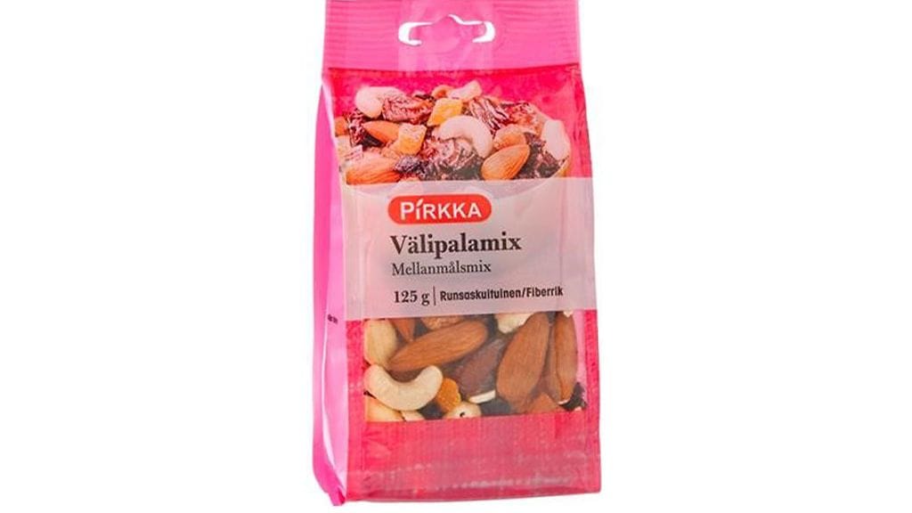 Ruokakesko Oy ilmoittaa vetäneensä myynnistä valmistuttamansa tuotteen "Pirkka välipalamix. Tuotteen pakkauskoko on 125 grammaa.