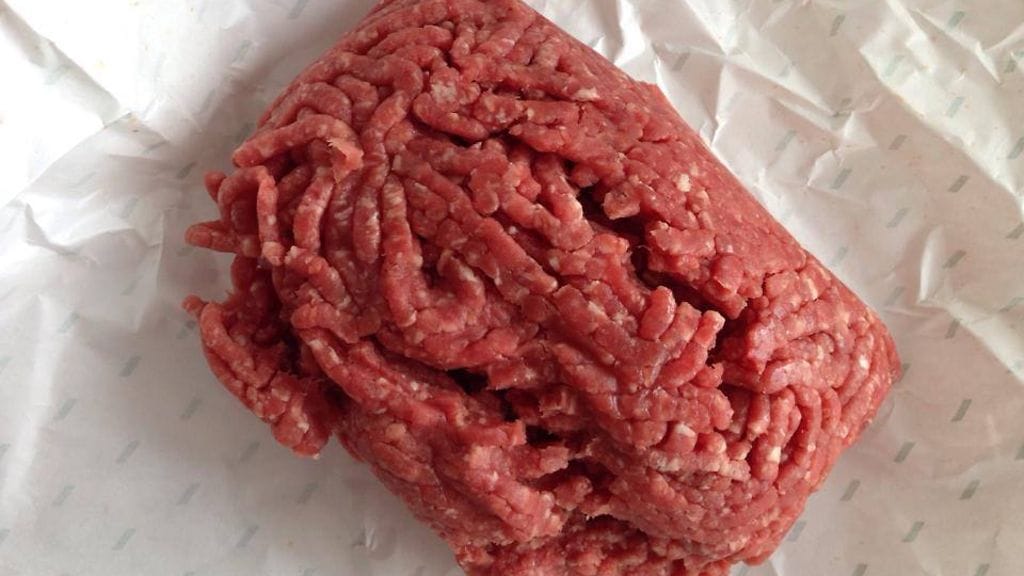 Aloitin oman lihakomboni naudan kuveesta ja ulkofileestä lisärasvalla. Tarkoitus oli ottaa kuveen sijaan rintaa, mutta sitä ei tiskissä ollut. Ulkofilee on hyvin pehmeää lihaa, joka toimii pihvissä hyvin, mutta normaalisti liian vähärasvaista. Nyt lihassa oli kiinni ”makurasvaa”, joten päätin kokeilla sellaista. Pyysin myllyyn mukaan vielä pari läskisoiroa varmuuden vuoksi. Tämä toimi erittäin hyvin, mutta tilaa rasvalle jäi vielä.