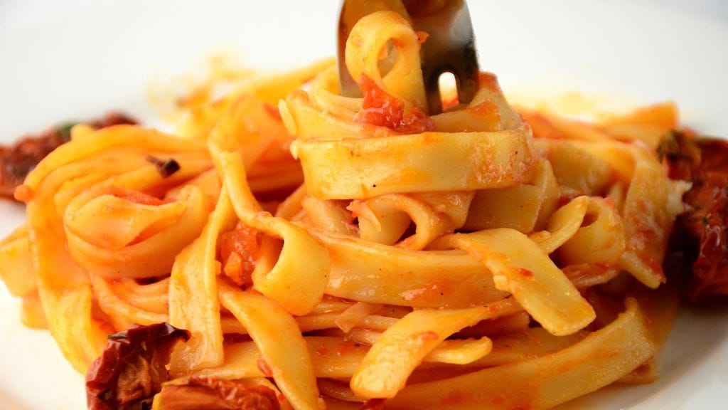 Kermainen pasta aurinkokuivatuista tomaateista (4–6 annosta)