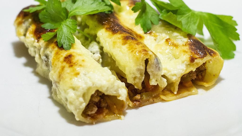 Löysin loistavan cannelloni-reseptin, jossa pastatuubit täytetään lihatäytteellä ja kuorrutetaan anjoviksella maustetulla valkokastikkeella. Upea, runsasmakuinen talviruoka!
