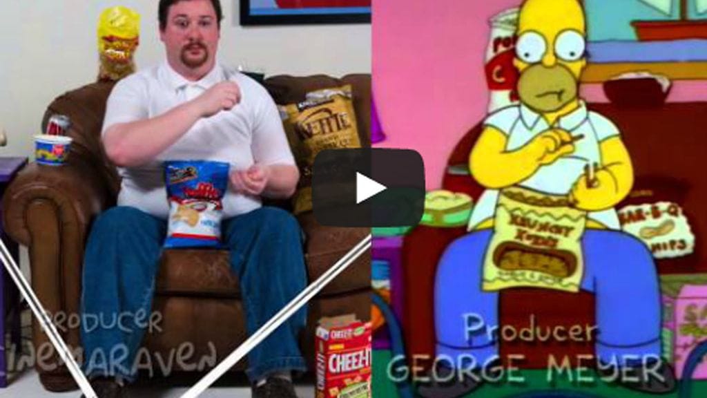 YouTubeen vastikään ladatulla videolla mies ahmii kaksin käsin herkkuja sohvalla aivan kuten Simpsonien Homer Simpson. Nopeutetulla videolla kuullaan Homerin maiskuttelua, joka sekin istuu tilanteeseen oivallisesti.