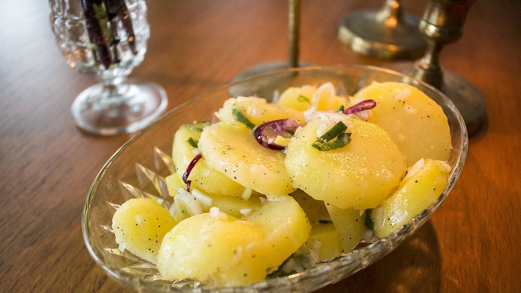 Törmäsin Wienin-reissulla varsin erikoiseen paikalliseen perunasalaattiin, jota tarjoiltiin aina Wiener Schnitzelin kylkeen.