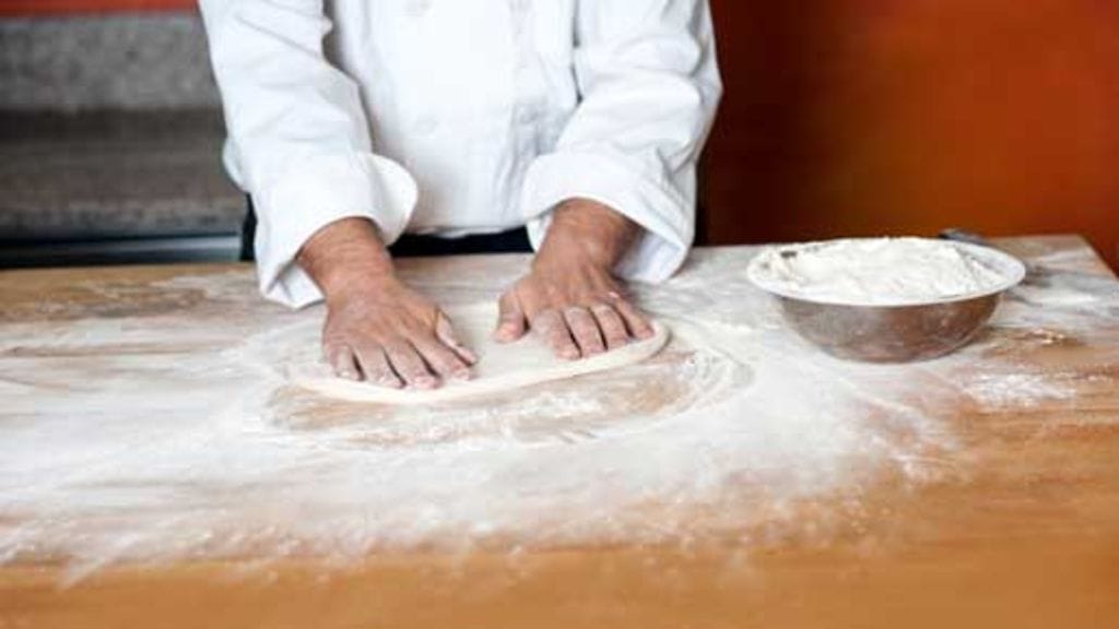 Kumoa taikina hyvin jauhotetulle pöydälle ja anna sen levätä 20 minuuttia. Jaa taikina kahdeksaan noin 200 gramman palaan. Vaivaa paloja käsissäsi, pyörittele niistä pieniä palloja ja laita ne harvakseltaan öljytylle uunipellille. Anna taikinapallojen seistä pellillä 2–3 tuntia huoneenlämmössä. Sinä aikana ne kohoavat ja nousevat. Kun ne ovat kasvaneet kooltaan kaksinkertaisiksi, niitä voi säilyttää jääkaapissa niin kauan, että ne käytetään. Parhaaseen lopputulokseen pääset, mitä kauemman odotat. Voi esimerkiksi olla fiksua tehdä taikina aamulla, jolloin se on valmis illan aterialle, mutta kaikkein parhaimman lopputuloksen saat, jos taikina saa seistä jääkaapissa yön yli eli ”kylmäkohottamalla”.
