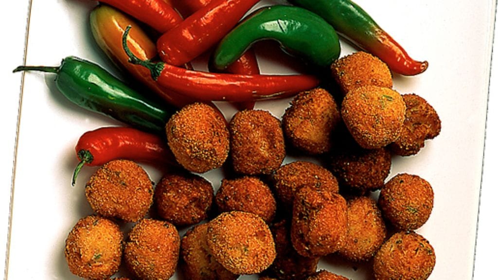 4. Kuumenna öljyä padassa, kunnes se sihisee, kun pudotat maustesiemenen siihen. Muotoile taikinasta pyöreitä palloja teelusikan avulla ja laske ne varovasti öljyyn. Keitä palloja öljyssä 5 minuuttia, kunnes ne ovat kullanruskeita. Nosta pallerot reikäkauhalla ja valuta ne talouspaperilla.