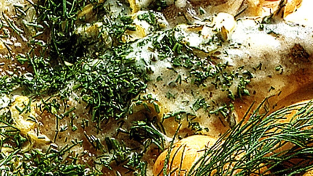 3. Purista päälle sitruunamehu, kaada vesi vuokaan ja kypsennä uunissa 15 minuuttia. Lisää vuokaan kerma ja kypsennä kalaa vielä 15 minuuttia.