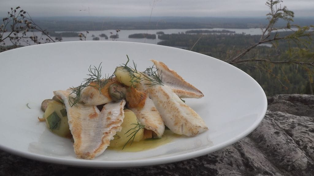 Paista ahvenfileet kuumalla pannulla oliiviöljyssä.