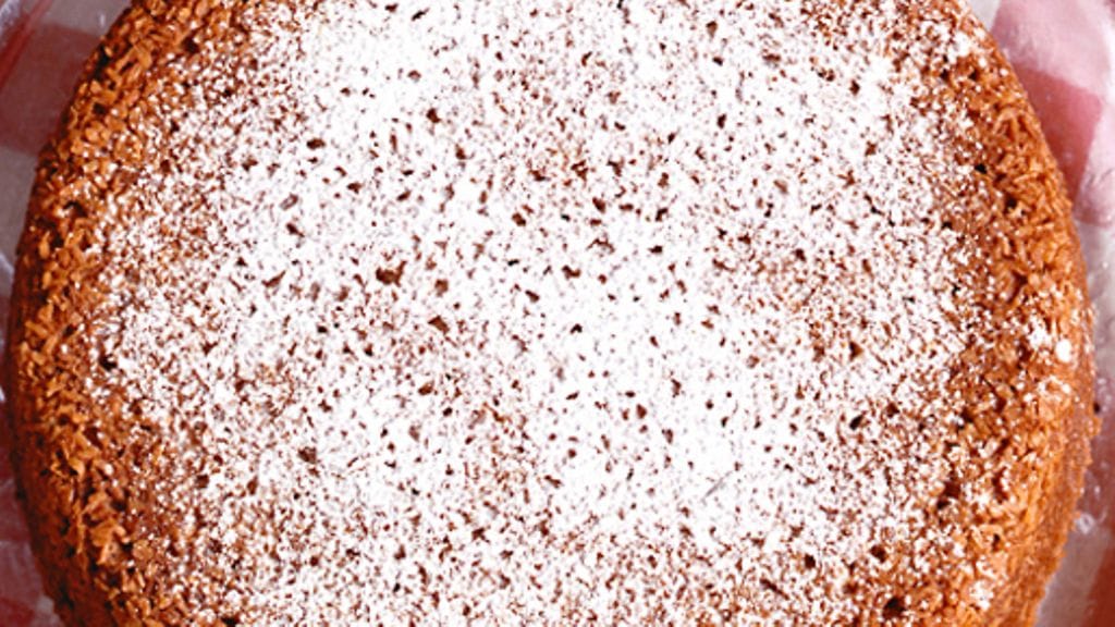 4. Kaada taikina vuokaan ja ripottele päälle loput kookoksesta. Paista uunissa n. 1 tunti, tai kunnes kakku tuntuu valmiilta – kokeile tikulla. Anna kakun jäähtyä ritilällä.