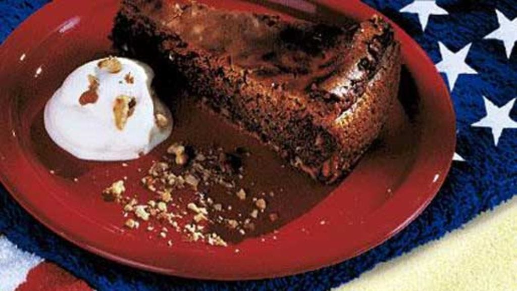 Sulata suklaa ja rasva. Vaahdota munat ja sokeri. Lisää hieman jäähtynyt suklaa-margariiniseos, jauhot, vanilliinisokeri ja murskatut saksanpähkinät muna-sokerivaahtoon.