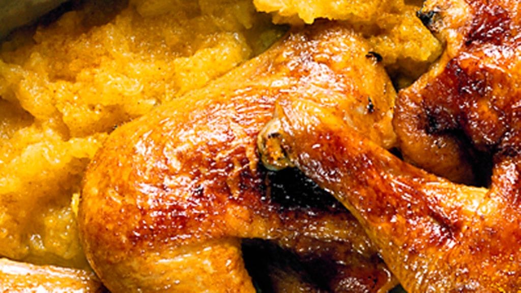 2. Sekoita voisula, curry ja soija, penslaa kanat seoksella. Paista uunin keskitasolla n. 45 minuuttia. Penslaa pari kertaa paistamisen aikana.