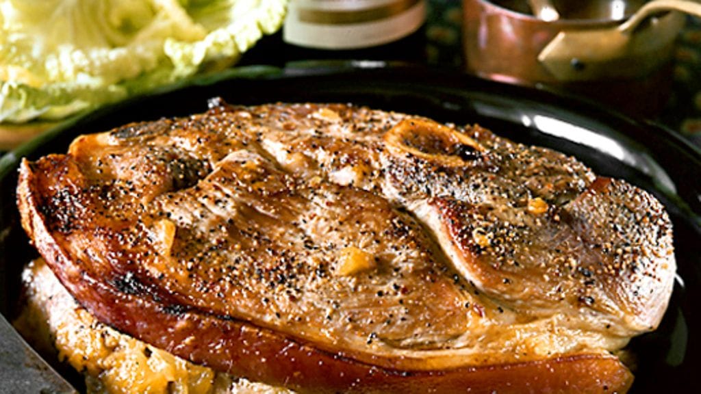3. Paista uunin keskitasolla ja lisää ananasmehua välillä. Paista uunissa 1 ½ -1 ¾ tuntia.