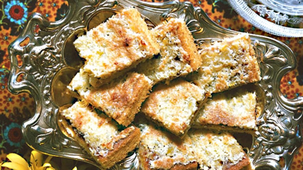 4. Valuta ananasmurskaa hieman ja levitä murska lämpimälle kakulle.
