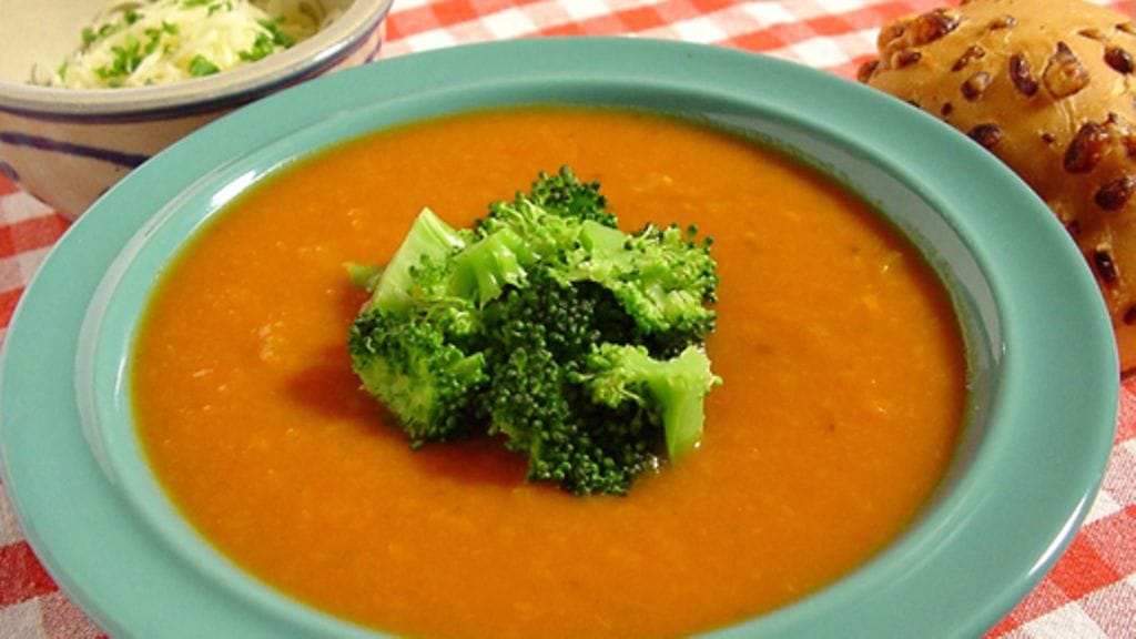 3. Soseuta keitto vähän kerrallaan, kaada takaisin pataan. Hienonna parsakaalikimput ja keitä pehmeäksi keitossa. Sekoita juustoraaste ja oregano ja lisää keittoon. Tarjoile hyvän leivän kera.