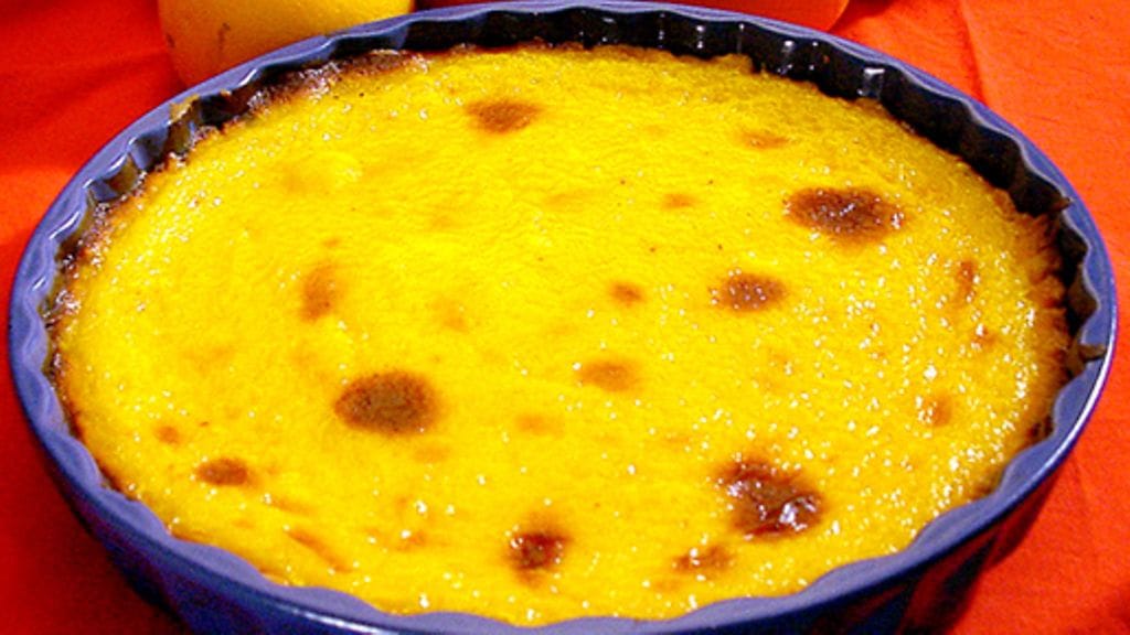 2. Kuumenna uuni 230 asteeseen. Sekoita tomusokeri, munankeltuaiset, appelsiininkuori ja -mehu kattilassa. Laita kattila miedolle lämmölle ja vatkaa, kunnes sokeri on liuennut. Lisää puolet pehmeästä voista ja vatkaa kunnolla, kunnes seos paksunee. Lisää loput voista ja vatkaa, kunnes seos on oikein paksu ja kermainen.