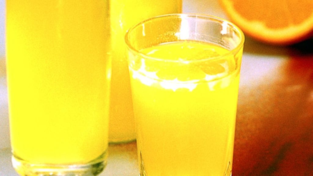 3. Puolita appelsiinit ja purista mehu. Lisää vastapuristettu mehu liemeen ja siivilöi tiheän siivilän tai harsokankaan läpi. Joskus mehu on siivilöitävä kaksi kertaa. Kaada mehu lämpimiin, huolellisesti puhdistettuihin pulloihin. Sulje pullot heti ja säilytä viileässä.