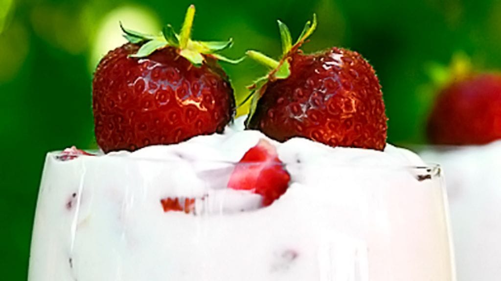 Juhlava jälkiruoka. Mansikat ja appelsiini ovat herkullinen yhdistelmä.