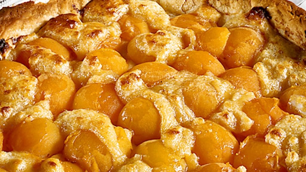 3. Sekoita mantelimassa ja muna. Valuta aprikoosit ja asettele ne pohjalle. Levitä päälle mantelimassa. Paista kypsäksi uunissa 10-15 minuuttia. Tarjoile kevyesti vatkatun kerman kera.