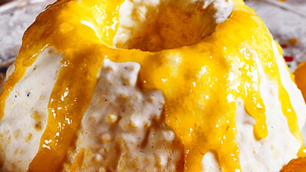 4. Kumoa jäätelö vadille, koristele aprikooseilla ja kaada kastike päälle.