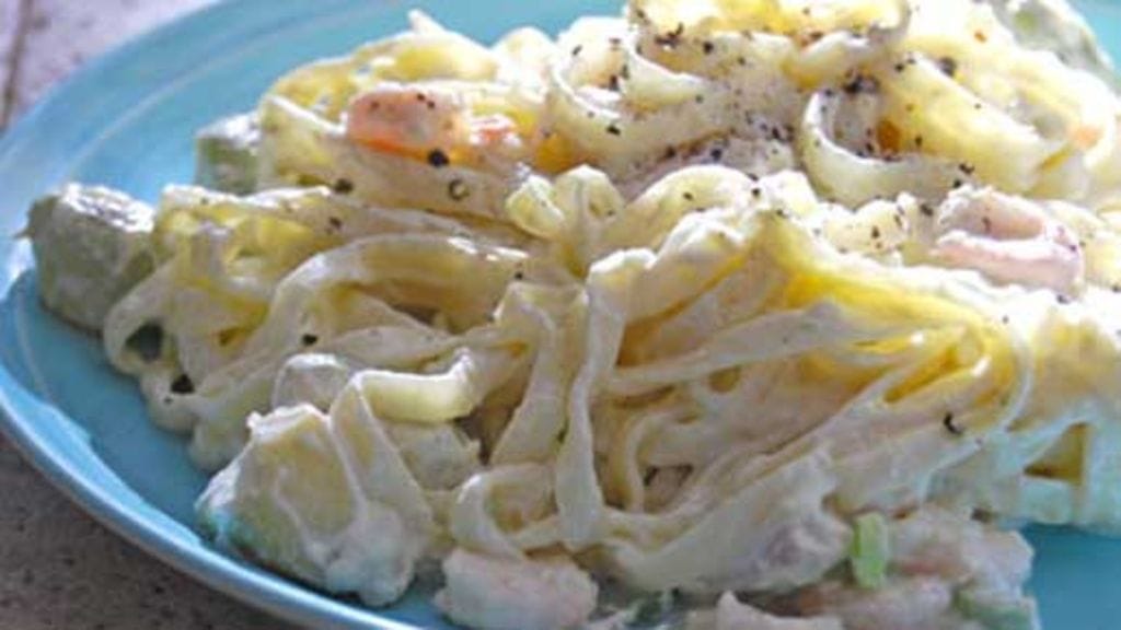 Kiehauta pastavesi, suolaa se ja laita pasta kiehumaan. Kuumenna oliiviöljy pannussa ja heitä salottisipulit siihen pehmenemään, säädä liesi keskilämmölle. Kuullota salottisipuleita ja lisää joukkoon avocado, pehmennä hetki ja kaada joukkoon valkoviini. Anna alkoholin haihtua ja lisää limetinmehu sekä créme fraiche. Sekoita ja mausta pippurilla ja suolalla. Pienennä lämpöä. Tarkista missä vaiheessa pasta on. Jos se on al dente, lisää katkaravut kastikkeeseen, sekoita ja nosta pastakauhalla kuuma pasta kastikkeen joukkoon. Sekoita pasta ja kastike toisiinsa kahdella puulusikalla ja raasta sekaan tuoretta parmesania. Tarjoile heti. Jos olet epävarma siitä, ehditkö valmistaa kastikkeen ennen pastan kypsymistä, valmista kastike katkarapujen lisäämistä vaille valmiiksi. Pidä pienimmällä lämmöllä ja jatka pastan valmistuttua yllä olevan ohjeen mukaisesti.