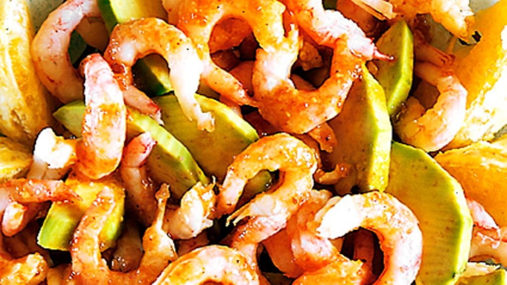 Osta suuria, hienoja katkarapuja. Jos ne ovat pakastettuja, sulatat ne parhaiten sanomalehden päällä. Purista avokadoviipaleiden päälle hiukan appelsiinimehua, niin ne eivät tummu.