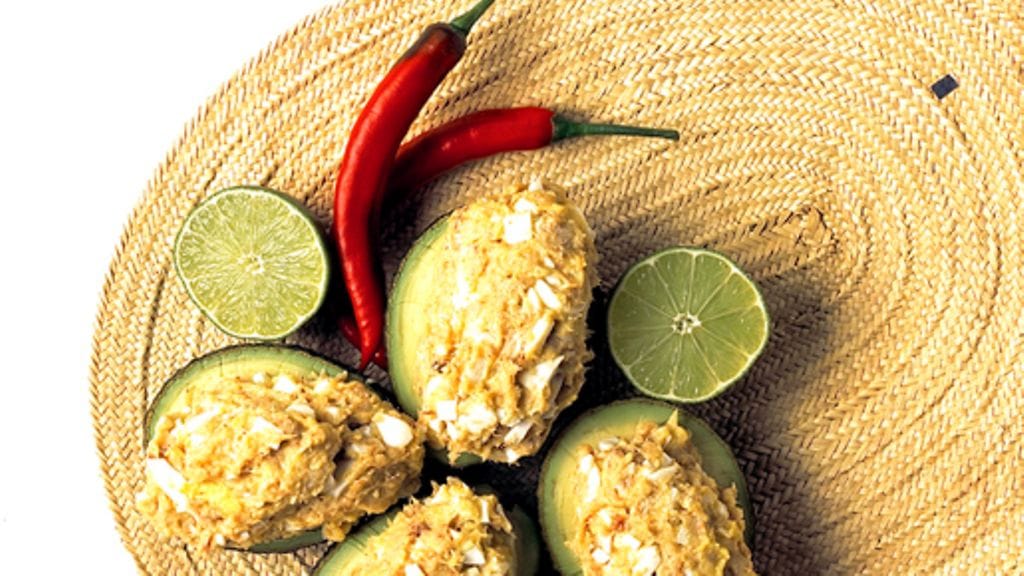 3. Halkaise avokadot juuri ennen tarjoilua ja poista kivet. Pane puolikkailla reilu lusikallinen savusilkkahöystöä ja koristele annokset limetinpuolikkailla tai sitruunalohkoilla.
