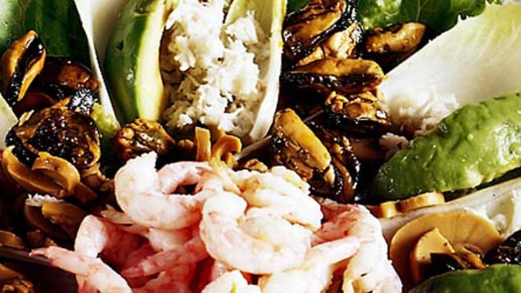 2. Pidä huoli, että kaikki salaatinkastikkeen ainekset ovat huoneenlämpöisiä. Vatkaa tai ravista yhteen sinappi, vesi, viinietikka, suola ja pippuri. Lisää lopuksi öljy.