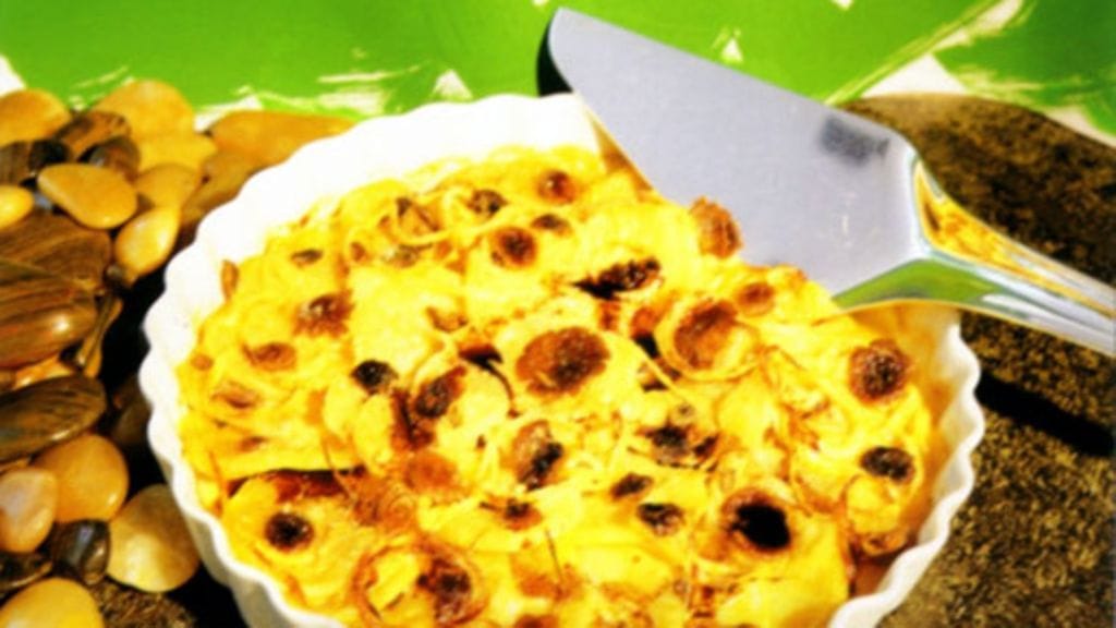Lisää vuokaan kasvisliemi ja paista 200-asteisessa uunissa noin tunnin.