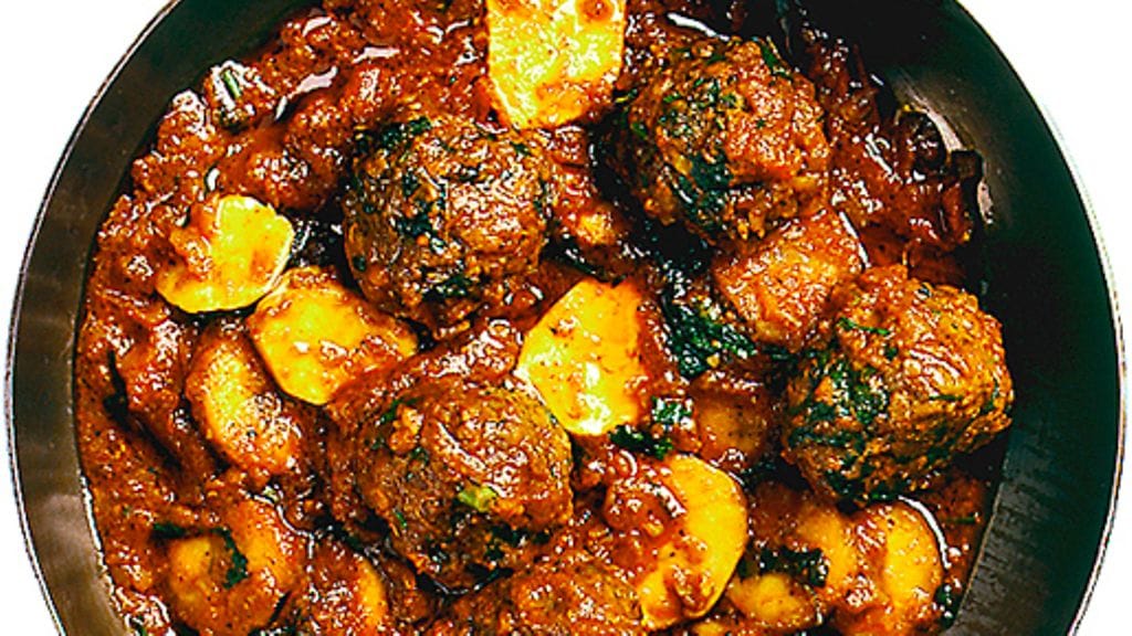 1. Kuori ja hienonna sipulit ja valkosipuli. Hienonna tomaatit. Lämmitä öljyä paistinpannussa, kunnes se sihahtaa, kun siihen lisää sipulipalan. Kuullota sipuli ja valkosipuli vaaleanruskeiksi. Sekoita kulhossa kuullotettu sipuli, garam masala, juustokumina, paprikajauhe, mustapippuri, jauhettu korianteri, suola, korianterisilppu ja kikhernejauhot. Lisää jauheliha ja vaivaa joustavaksi mutta kiinteäksi mureketaikinaksi. Kieritä siitä 16-20 lihapullaa.