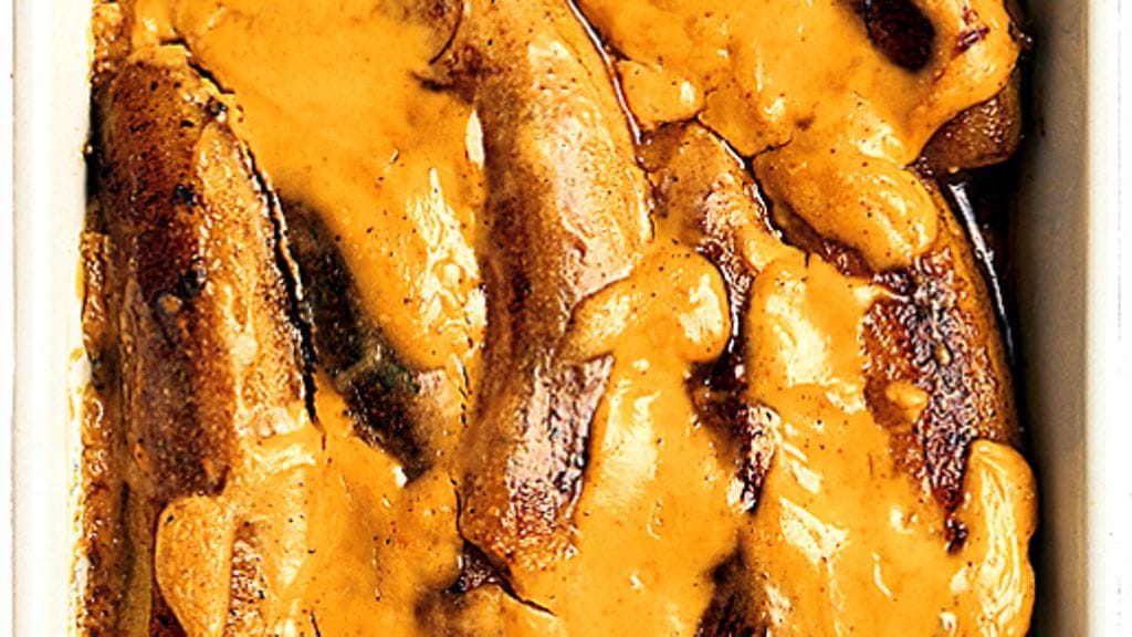 2. Voitele uuninkestävä vuoka. Kuumenna voi paistinpannussa keskilämmöllä. Paista banaanit muutama kerrallaan kunnes ne ovat kullanruskeita joka puolelta. Nosta banaanit pannulta, asettele banaaneja ja rommikreemiä kerroksittain vuokaan.