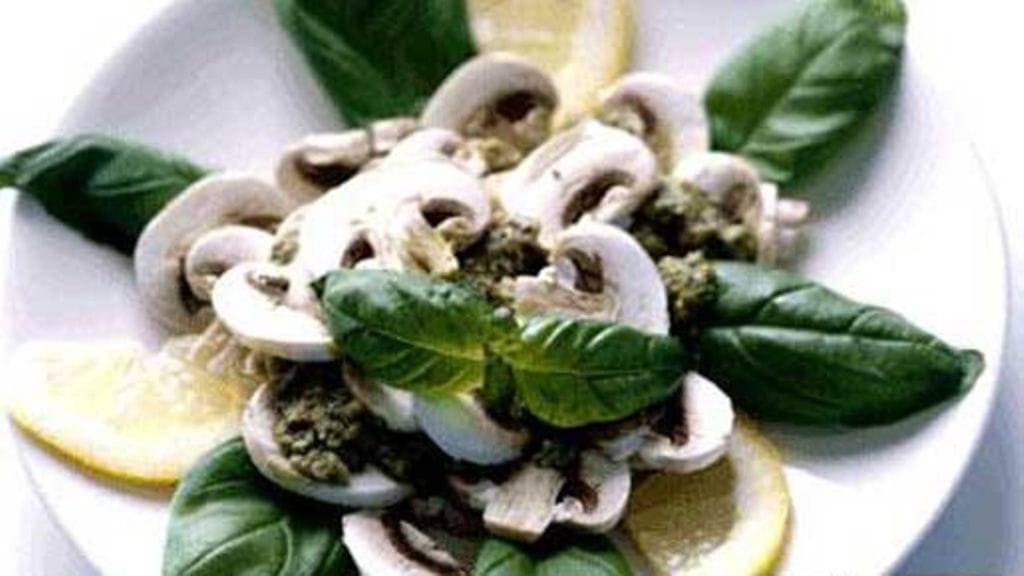 Sienten kastike syntyy parmesan-juustosta ja saksanpähkinöistä.