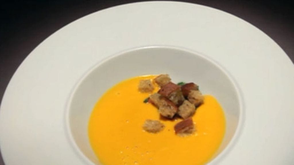 Keitä bataatit ja valkosipulit kypsiksi. Laita voi, bataatit ja valkosipuli blenderiin. Kiehauta maito, lisää soseen joukkoon ja aja keitoksi. Mausta.