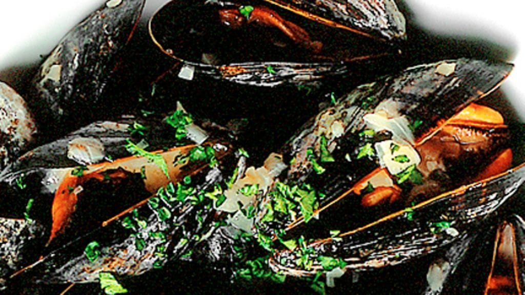 3. Laita simpukat pataan ja kaada päälle viini. Peitä kannella ja keitä 5 minuuttia. Sekoita pari kertaa keittämisen aikana. Kaikkien simpukoiden tulee olla avautuneita – heitä pois ne, jotka eivät ole avautuneet keittämisen aikana.