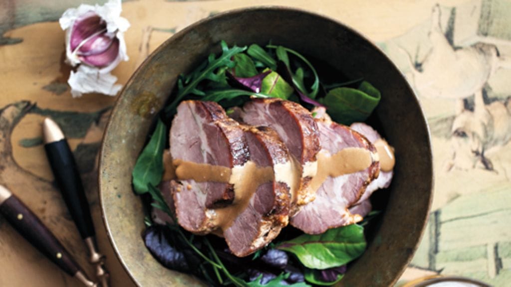 6. Kaada puolet marinadista lihan päälle ja sulje tiiviiksi paketiksi folion avulla. Käytä loput sinappiseoksesta kastikkeena.