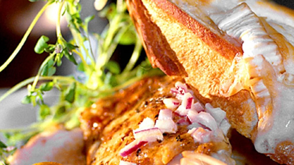 1. Kuumenna uuni 200 asteeseen. Paista broilerinpalat voissa, niin että ne saavat kauniin värin. Mausta suolalla ja pippurilla. Siirrä lihat uunivuokaan ja jälkikypsytä uunissa 8-10 minuuttia.