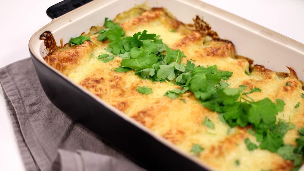 Täytä tortillat kanalla ja pyöritä ne rullalle. Aseta vierekkäin uunivuokaan. Kaada päälle kastike ja ripottele pinnalle juustoraaste. Paista 200-asteisessa uunissa noin 20 minuuttia.
