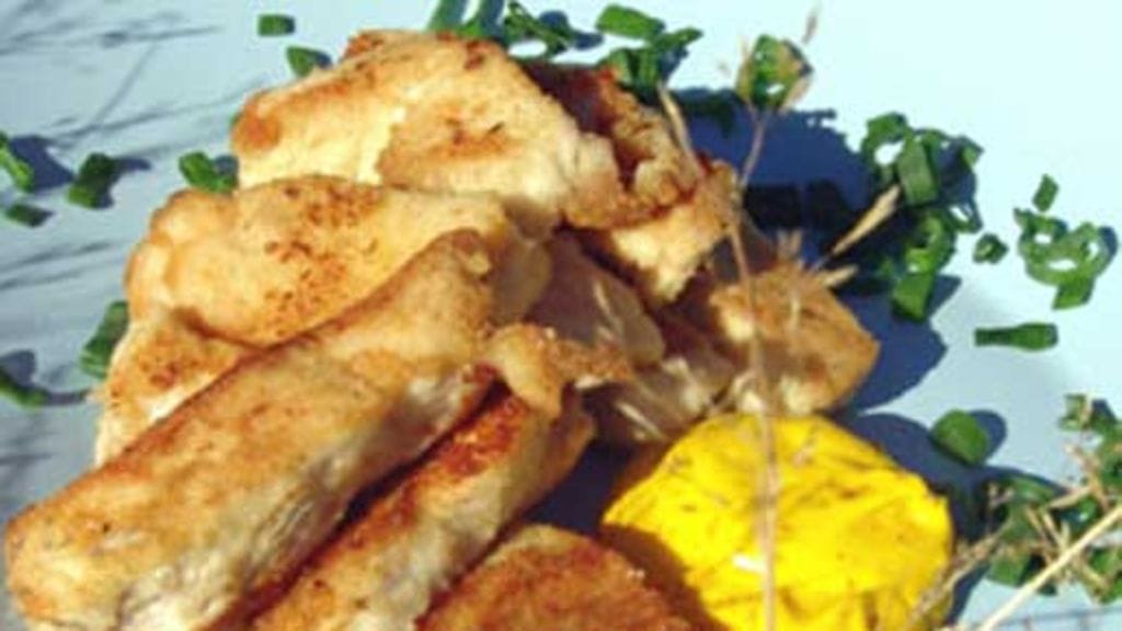 Leikkaa broilerinfileet ohuehkoiksi paloiksi ja pyöräytä ne korppujauhoissa. Lämmitä öljyä grillin parilatasolla ja paista palat kypsiksi.