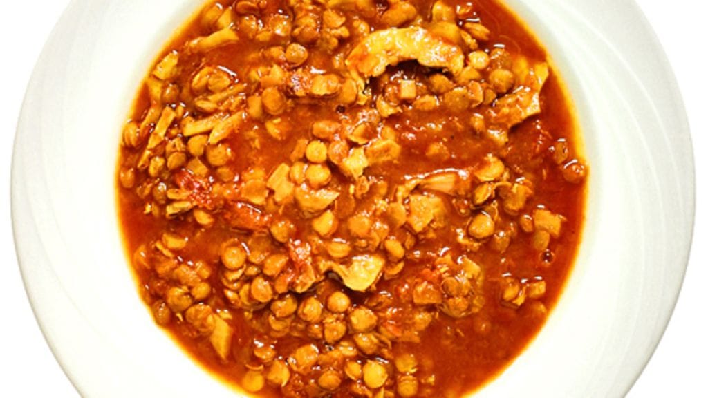 2. Hauduta miedolla lämmöllä kannen alla noin 35 minuuttia, kunnes linssit ovat pehmeitä.