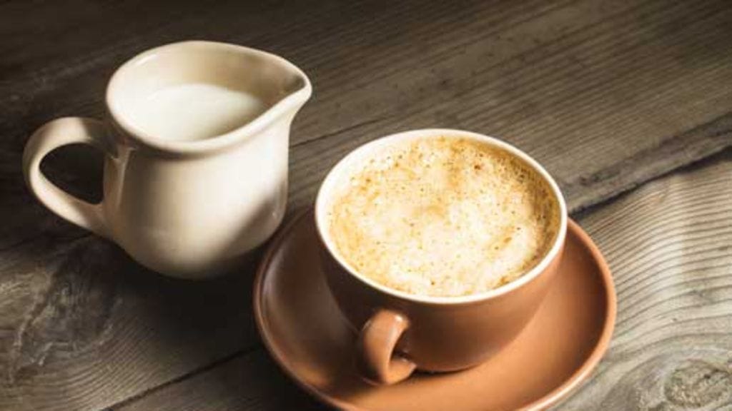 2. Sekoita suuressa kupissa tai kulhossa. Voit ripotella kahvin päälle kaakaojauhetta, kardemummaa tai kanelia.