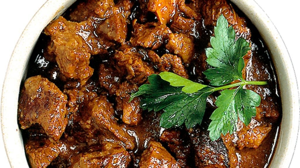 3. Lisää sinappi ja sekoita leivänmurut vähitellen joukkoon, kunnes padan koostumus on sopiva. Jos pata saostuu liikaa, sitä voi laimentaa oluella. Tarjoile lisänä perunoita ja vihanneksia.