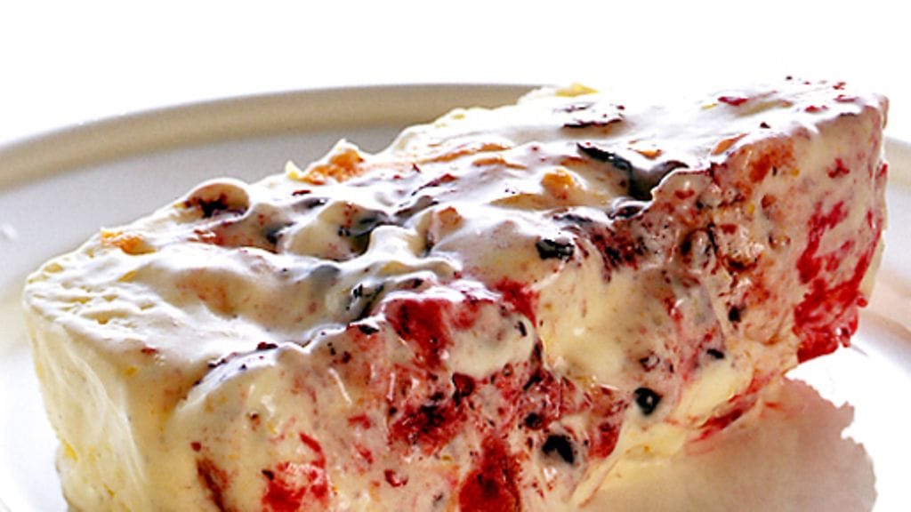 3. Pakasta pyöreässä vuoassa 5-6 tuntia. Ota jäädyke pakastimesta ja anna sulaa jääkaapissa n. 15 minuuttia ennen tarjoilua.