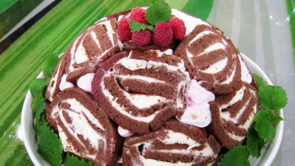3. Täyte 1: Sekoita kerma tuorejuustoon. Levitä täyte tasaisesti taikinalevylle ja kääri levy rullalle leivinpaperia apuna käyttäen. Laita kääretorttu hyvin peitettynä saumakohta alaspäin jääkaappiin vetäytymään. Kääretortun voit tehdä jo edellisenä päivänä tai ostaa kaupasta valmiina.