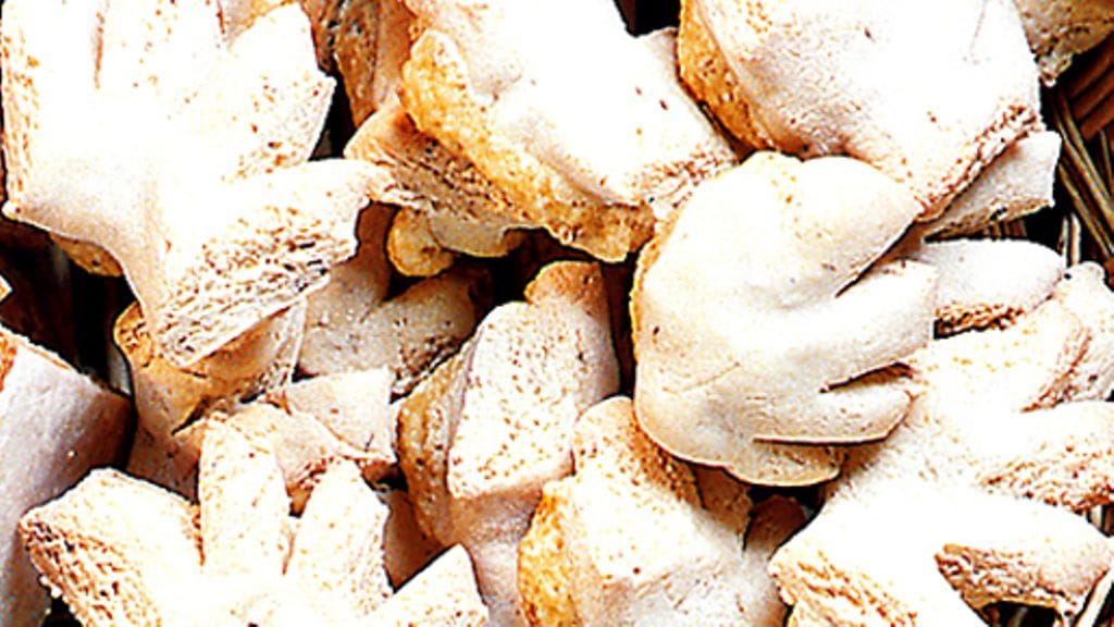 1. Sekoita kananmuna, tomusokeri, Kirschwasser, anis ja sitruunamehu kattilassa. Vatkaa vaahdoksi miedolla lämmöllä. Sekoita varoen jauhot vaahtoon ja anna muhia kannen alla 15 minuuttia.