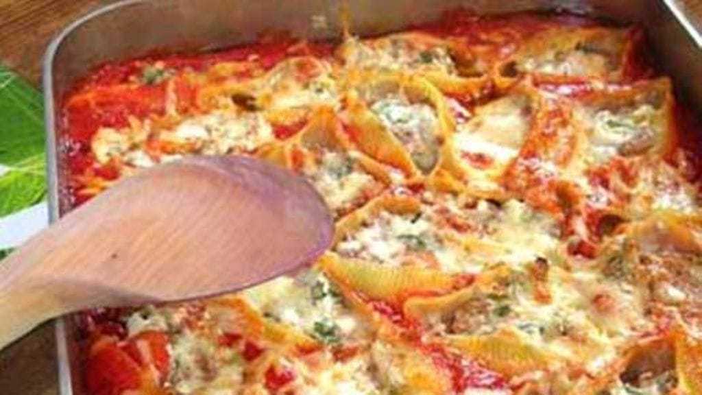 Tee ensin tomaattikastike. Kuumenna kasarissa oliiviöljy ja heitä sipuli ja valkosipulit öljyyn kuullottumaan. Pidä lämpö mietona, ettei valkosipuli pala kitkeräksi. Kun sipulit ovat pehmenneet, lisää kasariin chili ja laakerinlehti. Paistele hetken ja lisää loput ainekset sekä mausta suolalla ja pippurilla. Kiehauta tomaattikastike, laske lämpöä ja anna porista rauhassa vartin verran. Kiehauta tomaattikastikkeen valmistuessa iso kattilallinen vettä ja mausta suolalla. Keitä vedessä simpukkapastoja viitisen minuuttia tai juuri sen verran, että pastat pehmenevät, mutta ovat vielä raakoja sisältä eli pari minuuttia vaille al denten. Siivilöi pastat ja huuhtele runsaalla kylmällä vedellä, jotteivat pastat tartu toisiinsa kiinni. Jätä hetkeksi sivuun odottamaan ja valmista täyte.
