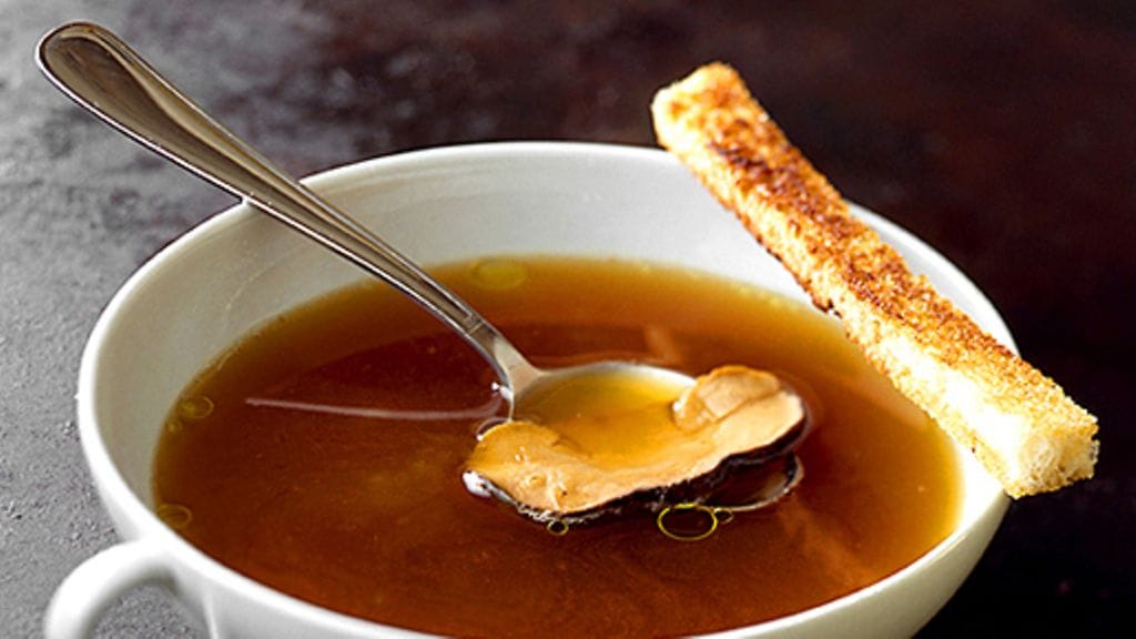 3. Kuumenna jälleen kiehuvaksi ja pane tattipalat kiehumaan hetkeksi. Tarjoile kuumana lämmitetyiltä lautasilta krutonkien kera.