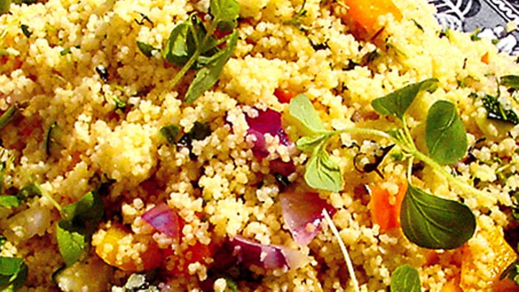 2. Kiehauta vesi, kasvis- tai lihaliemi ja kaada couscousryynien päälle. Anna seistä kannen alla 10 minuuttia, kunnes neste on imeytynyt ryyneihin.