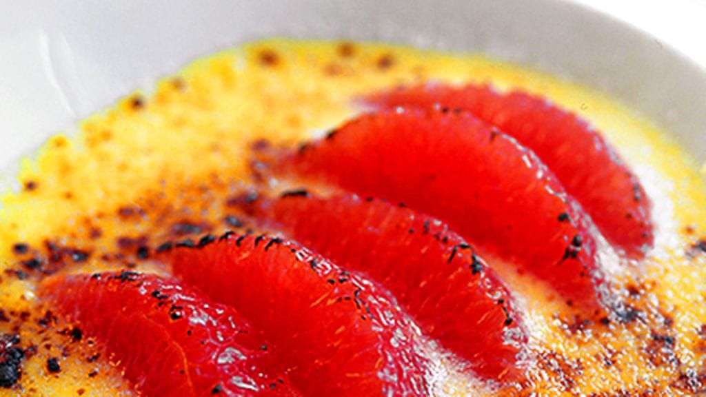 3. Asettele greippifileet brûleille. Ripottele päälle raakaruokosokeria ja laita ne grillivastuksen alle pariksi minuutiksi tai kunnes sokeri on sulanut ruskeaksi ja kuplivaksi. Tarjoile heti.