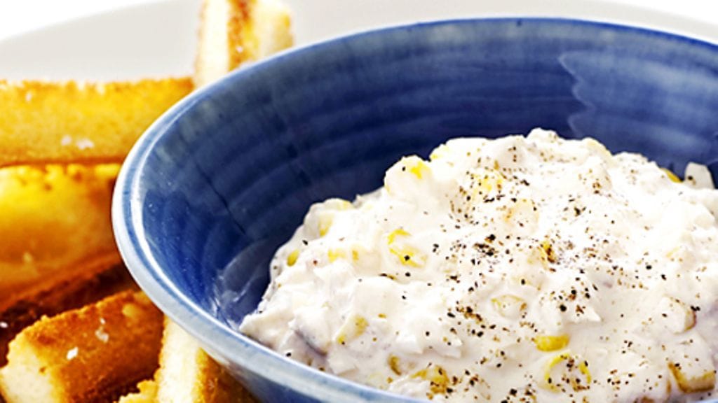 4. Sekoita tonnikala ja majoneesi kulhossa tasaiseksi massaksi. Lisää maissi ja sipuli, mausta suolalla ja pippurilla. Siirrä tahna kannelliseen kulhoon ja pane kylmään tarjoiluun asti.