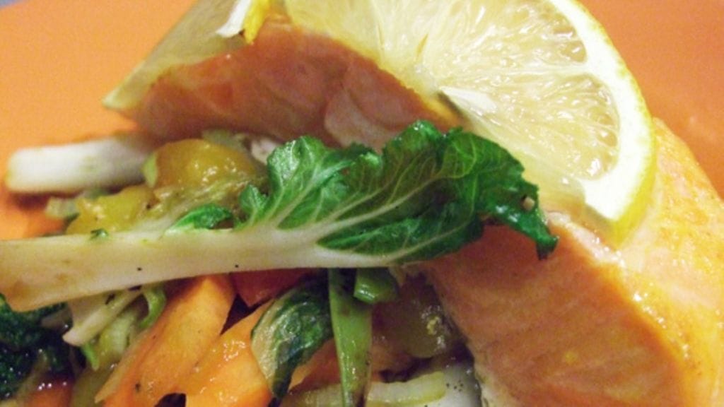 Leikkaa lohifilee neljään annospalaan. Laita palat nahkapuoli alaspäin uuninpellille ja mausta ne currylla, suolalla ja pippurilla. Leikkaa jokaisen palan päälle ohuet sitruunansiivut.