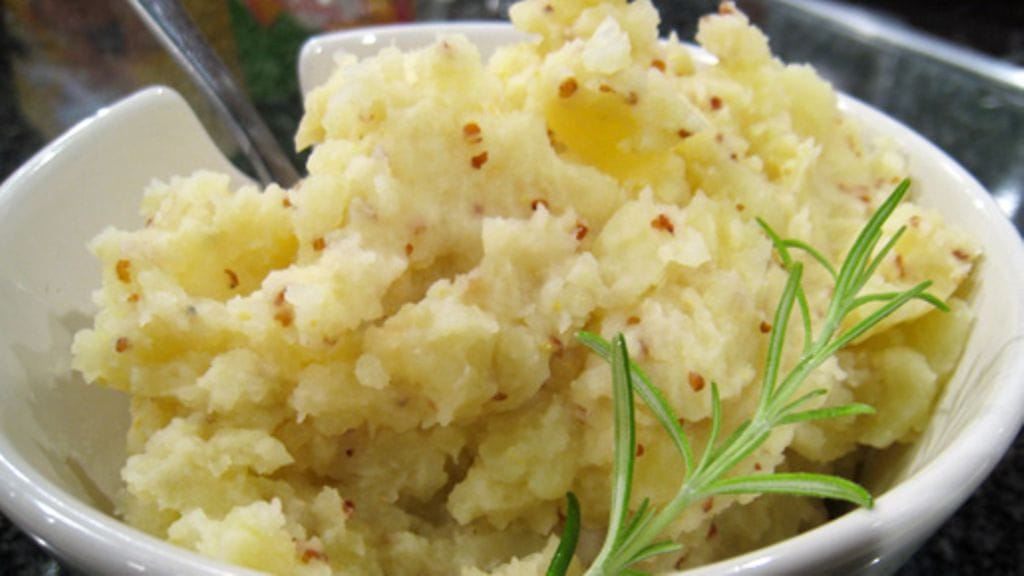 Perinteiseen perunamuusiin saa vaihtelua maustamalla. Makuja-kokki Henri Alén piristää sveitsinleikkeen kanssa tarjoiltavaa perunamuusia Dijon-sinapilla.