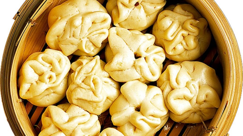 3. Nyytit: Vaivaa taikinaa 5 minuuttia. Kieritä se pötkyläksi ja leikkaa 24 osaan. Kauli jokainen osa pyöryläksi, läpimitaltaan noin 10 cm. Nosta taikinalle täytettä ja nipistä taikina tiiviiksi nyytiksi. Anna nyyttien levätä puoli tuntia. Nosta nyytit höyrykattilaan niin, etteivät ne kosketa toisiaan ja kypsennä voimakkaasti kiehuvan veden päällä 15 minuuttia. Tarjoile lämpimänä tai kylmänä.